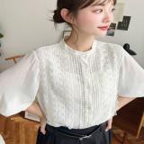 moment+ シフォンジョーゼットスタンドカラーフロントレースシャツ モーメントプラス トップス シャツ・ブラウス ホワイト ブラック ベージュ【送...