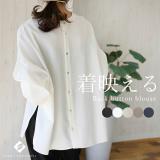 後ろボタン袖シャーリングブラウス 【メール便可/ma3】ブラウス 後ろボタン シャーリング バンドカラー スキッパー 2way きれいめ 大人 スリット 3...