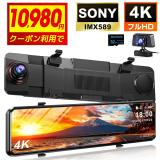 \楽天1位/ 【爆安10,980円★衝撃クーポンで】 ドライブレコーダー ミラー型 4K 1440P 高画質 SONYセンサー 12インチ 超大画面 前後カメラ 同時録...