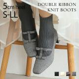 【一部予約】25年秋冬新作 VIVIAN ヴィヴィアン リボン ブーツ レディース ニットブーツ ソックスブーツ ショートブーツ 5cm プレートヒール スク...