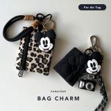 【7%オフクーポン◆20時開始】オールド キャラクターチャーム カメラモチーフチャーム レオパード柄ポーチ付き バッグアクセサリー レトロ ネコポ...