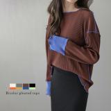 【半額クーポン対象】トップス 配色 長袖 バイカラー プリーツ 細見え 着映え ステッチ ラクチン 涼しい 5分袖 カットソー レディース おすすめ お...