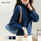 【2,580円→2,345円!】プリーツスリーブハイネックニット レディース トップス 長袖 リブ ニットモックネック プリーツスリーブ ぽわん袖 ハイネッ...