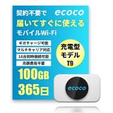 【ecoco公式】リチャージ型 Wi-Fi T9 充電式 ポケット 本体 契約不要 月額不要 通信制限なし マルチキャリア対応 docomo au SoftBank 365日 ギガチ...