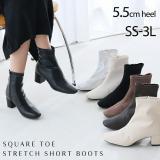 【500円OFFクーポンで3980円】【5.5cmヒール】25年秋冬新色 Vivian ブーツ レディース ショート ストレッチ スクエアトゥ チャンキーヒール ブラッ...