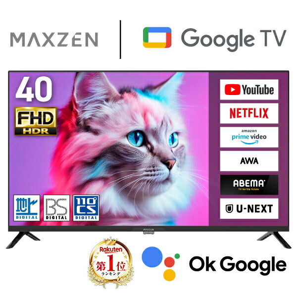 【期間限定5%OFFクーポン 9/16 10:00まで】 テレビ 40型 Googleテレビ 液晶テレビ 40インチ グーグルテレビ 40V Google TV スマートテレビ Wチューナー 外付けHDD録画機能 地上・BS・110度CSデジタル フルハイビジョン MV40CH06 MAXZEN マクスゼン PB00001 エクプラ特選