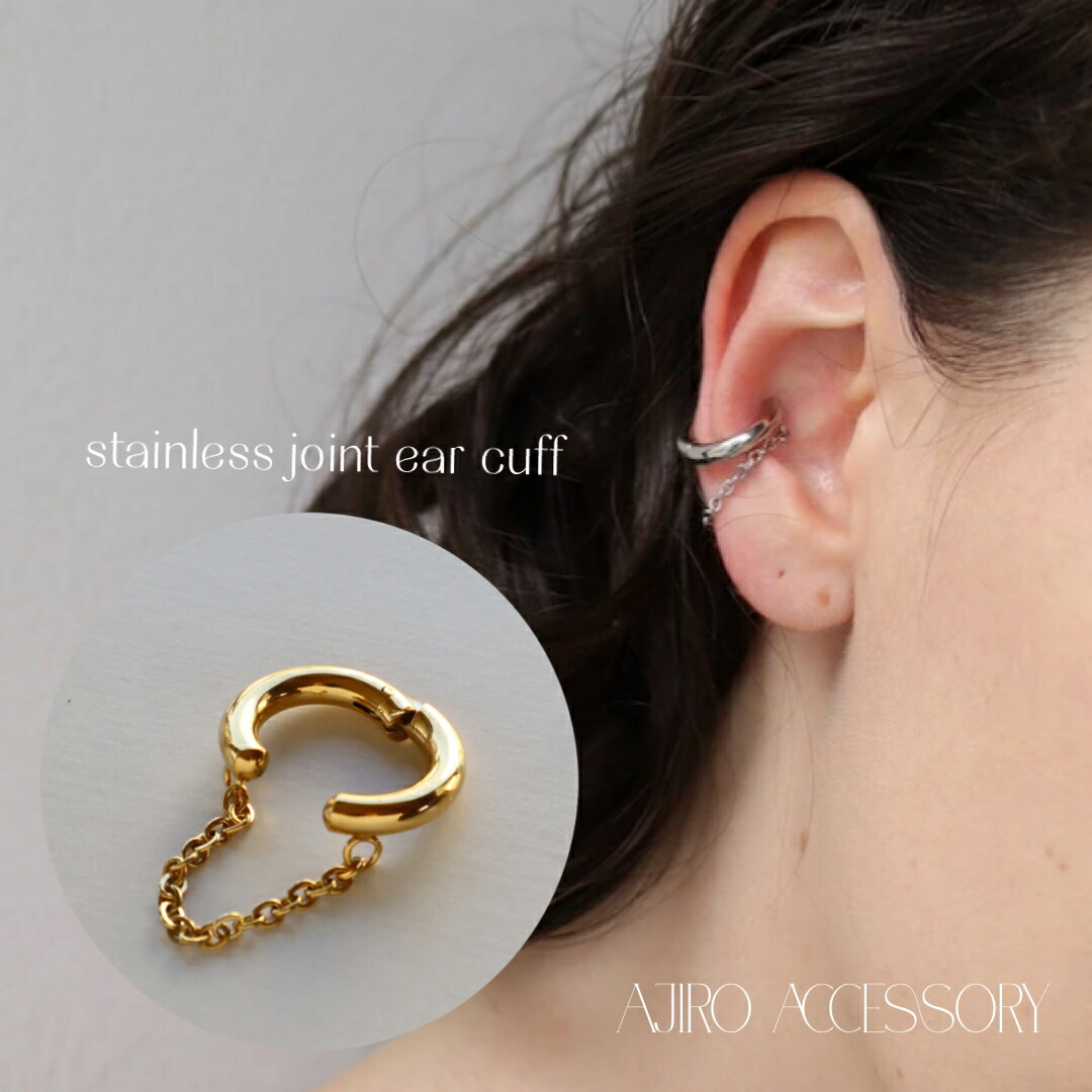 C008 イヤーカフ サージカルステンレス ジョイントイヤーカフ 金属アレルギー対応 チェーン ゴールド シルバー 調節可能 シンプル おしゃれ イヤカフ イヤーカフス ギフト プレゼント レディース メンズライク accessory 5pw