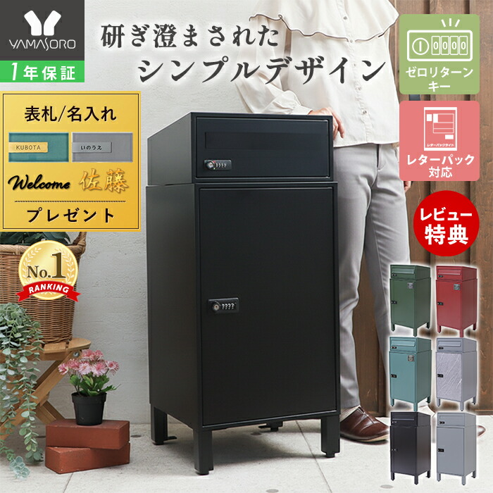 楽天ランキング入賞! 【着後レビューで選べる特典】 シンプルながらもパッと目を惹くカラー メール便・レターパックも対応した大容量の宅配ボックス付きポスト ゼロリターンキーで防犯