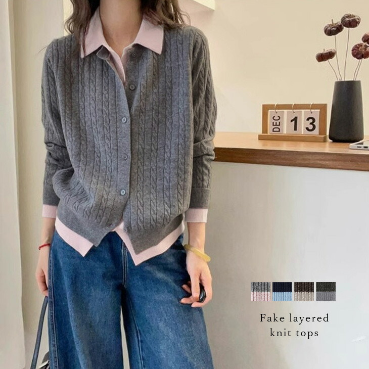ニット カーディガン レイヤード風 配色デザイン バイカラー こなれ感 トレンド トップス