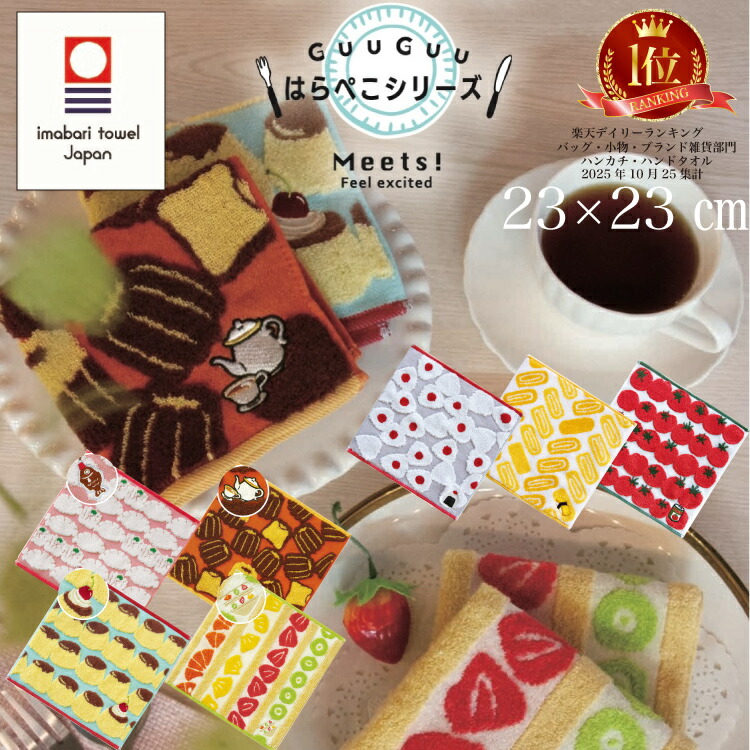 【メール便送料無料】可愛いはらぺこシリーズの刺繍ハンカチ Meets! ウィンナー たまご焼き おにぎり トマト 目玉焼き餃子 しゅうまい カヌレ プリン フルーツサンド