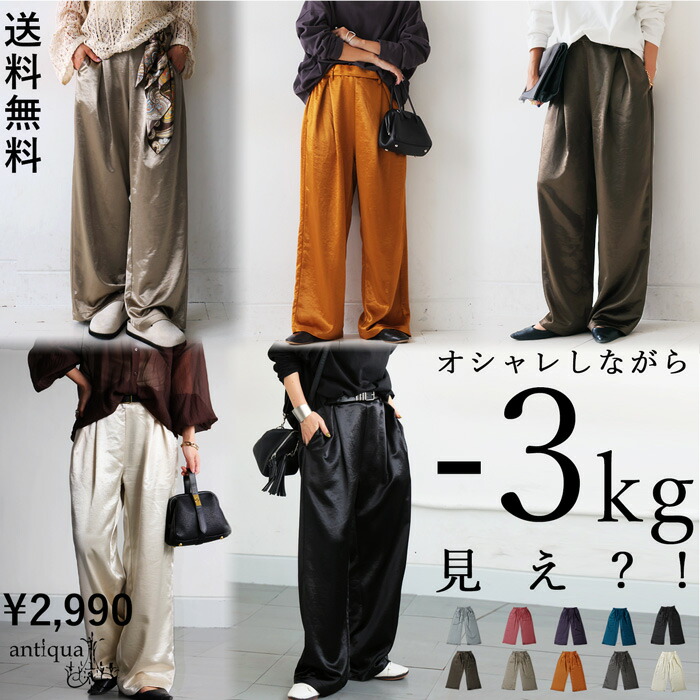 秋冬アイテム2点半額!20日20時〜24日10時 特別送料無料 サテンパンツ レディース ボトムス イージーパンツ・再入荷 (100)メール便可