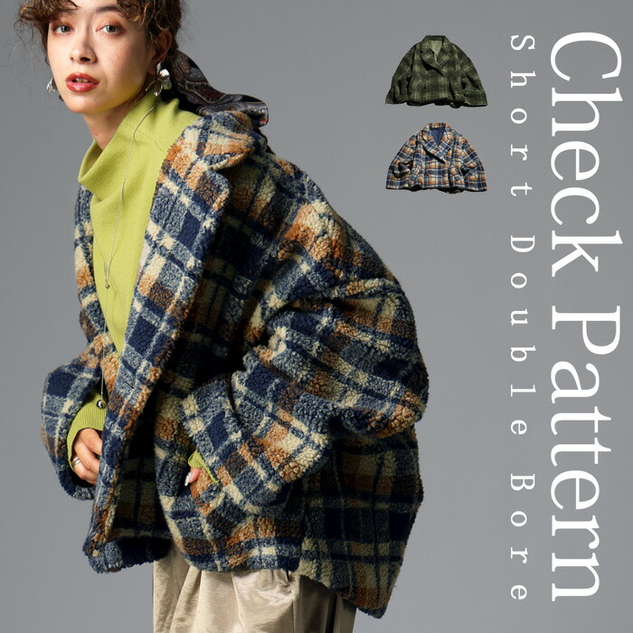 チェック柄 ボアジャケット レディース ショート丈 送料無料・メール便不可