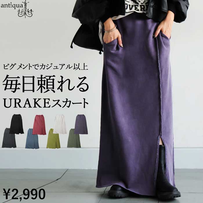ピグメント 裏毛 スカート レディース ロング 無地 綿100・メール便不可
