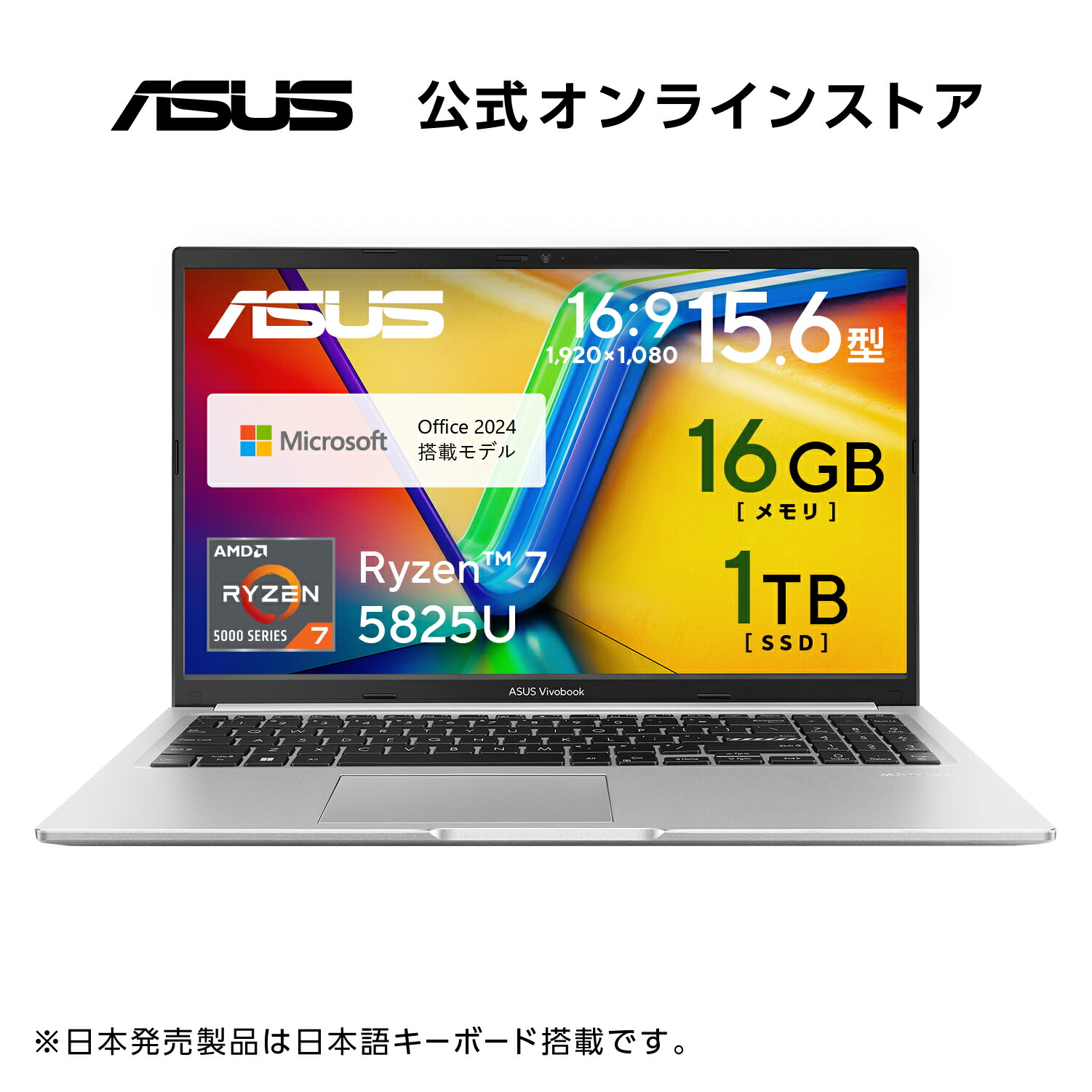 【10/22-27クーポン配布セール】ノートパソコン Ryzen 7 5825U メモリ 16GB SSD 1TB 15.6型 Webカメラ Bluetooth Wi-Fi Windows11 日本語キーボード Type-C Power Delivery対応 Microsoft Office付き ASUS Vivobook 15 M1502YA-BQ686WS