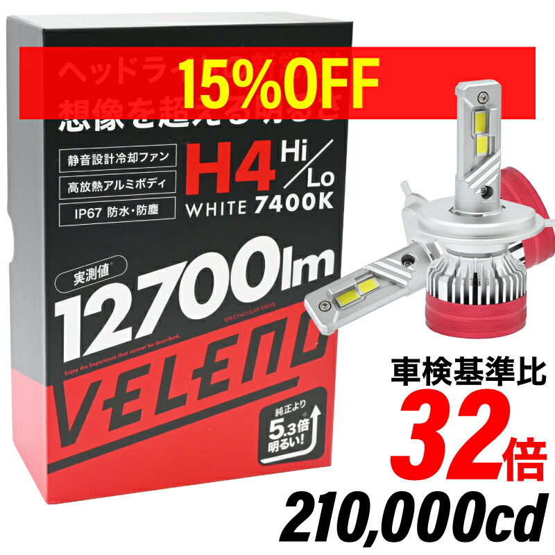 【2115円OFF】H4 LED ヘッドライト VELENO 実測値 12700Lm 210,000cd Hi Lo 切り替え ハイビーム ロービーム ヴェレーノ バルブ 車検対応 1年保証 HID 超の明るさ LEDヘッドライト H4ヘッドライト 爆光 明るい