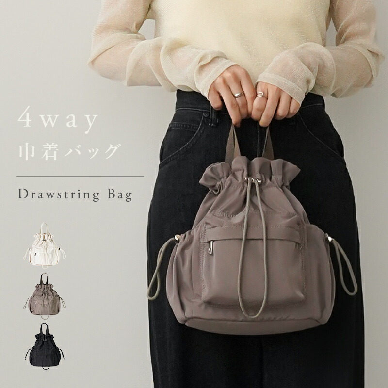 巾着バッグ ショルダー ショルダーバッグ レディース ナイロン風バッグ 軽い 斜め掛け 4way リュック ブラック 巾着ショルダー レディースバッグ バッグ ペットボトル 巾着 おしゃれ グレージュ ドロスト ドロストバッグ