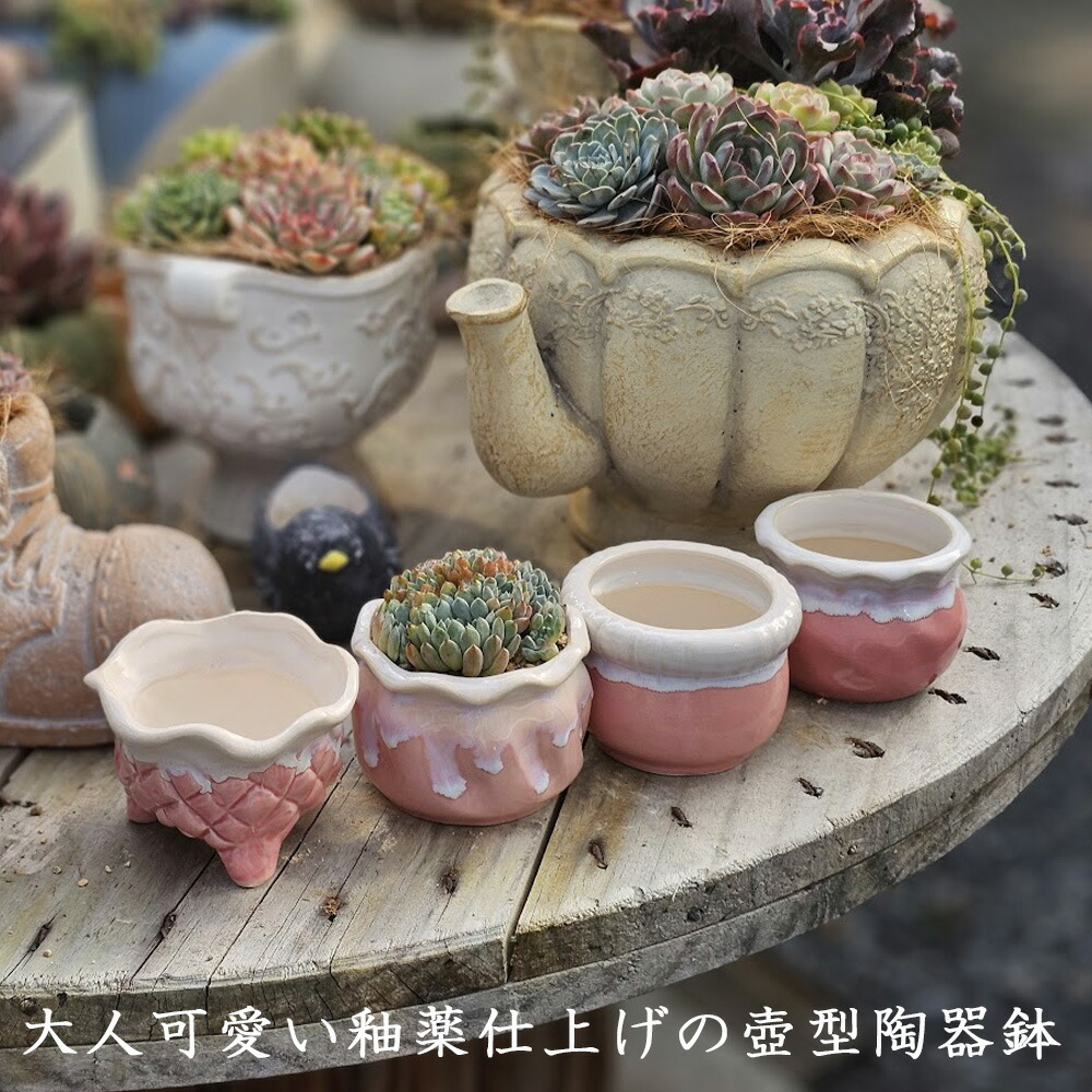 釉薬がきれいな壺型陶器鉢 ピンク4種類セット おしゃれ 陶器鉢 植木鉢 エケベリア 多肉植物 観葉植物