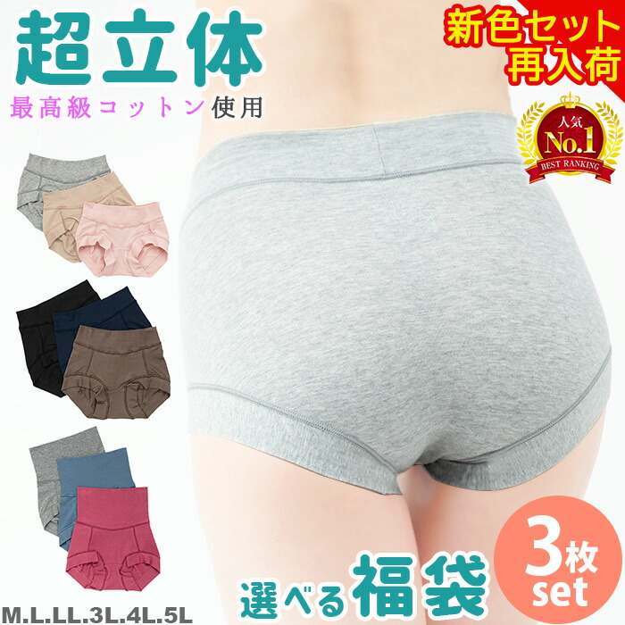 【楽天1位】超立体ショーツ 3枚セット 福袋 最高級スーピマコットン レディース ショーツ まとめ買い 綿 肌に優しい 選べる 股上深め 深履き 浅め 大きいサイズ M/L/LL/3L/4L/5L セット ボクサーパンツ 食い込まない 締め付けない ボディヒンツ shorts
