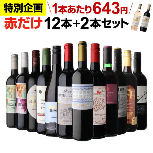 【1本あたり643円 送料無料】44%OFF 赤だけ!特選ワイン12本+2本セット(合計14本) 第236弾 ワイン ワインセット 赤ワインセット 赤ワイン ワイン ギフト 浜運A ハロウィン【ポイント対象外】