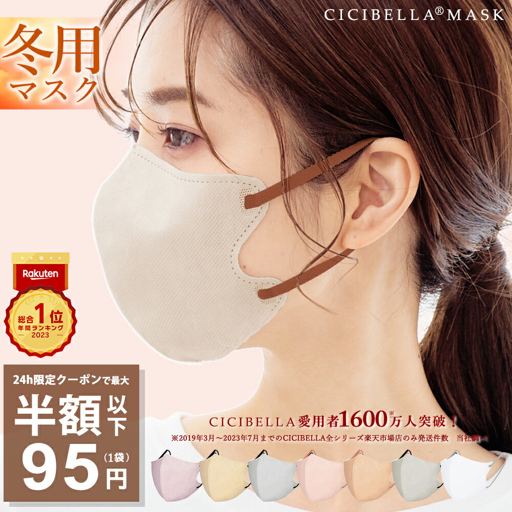 本日限りSALE【クーポンで最安1点95円】11/12 23:59迄 マスク 不織布 立体 3Dマスク 立体マスク 不織布マスク バイカラーマスク 血色マスク 小顔マスク マスク カラーマスク くちばし マスク 冷感マスク 99% 20枚 10枚*2 オシャレ cicibella シシベラ 秋冬マスク