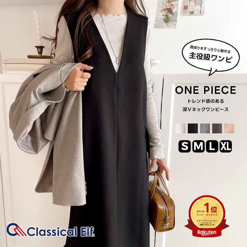 \先着順!48h限定 1500円OFF クーポン配布/ 【 楽天ジャンル1位獲得】 クラシカルエルフ classical elf ワンピース レディース きれいめ 軽量 すっきり 高見え 体型カバー 30代 40代 50代 ロングワンピース 秋 冬 春 夏 2025SS ce1260076