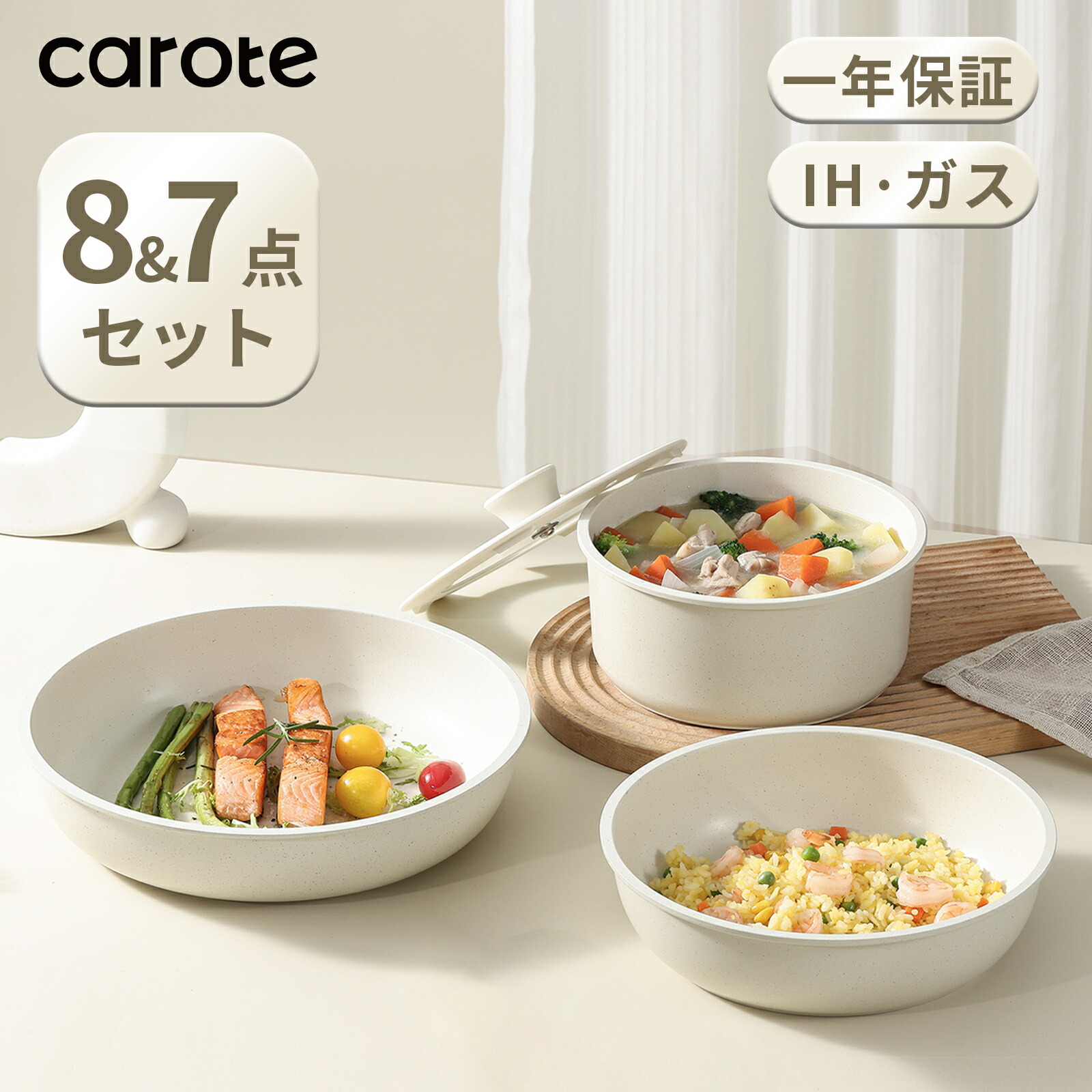 【今だけ!8点が4980円のみ!】CAROTE カローテ フライパン セット 7・8点 ih対応 PFOA PFOS フリー 取っ手が取れる 一人暮らしセット マーブルコート くっつかなく洗いやすい オール熱源 ベージュ ICE CREAM 一年保証