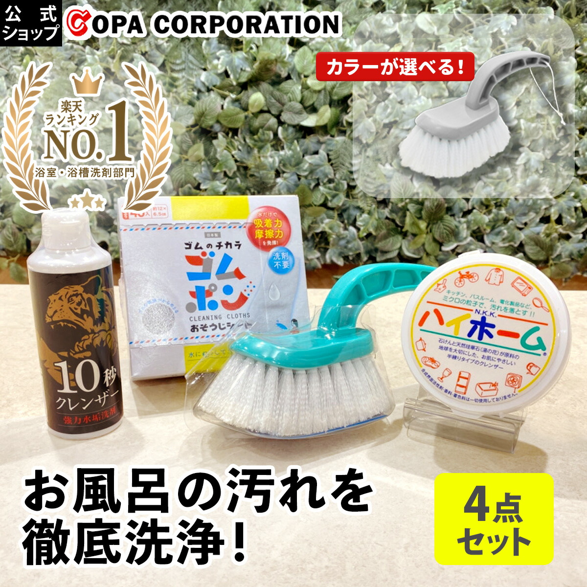 【コパ公式】 お風呂 お掃除セット ゴムポン バスブラシ ゴムポンバスブラシ ハイホーム 10秒クレンザー ゴムポンシート 洗剤 クレンザー 研磨剤 お風呂場 風呂 汚れ 汚れ落とし 水垢 水アカ 水あか ブラシ 浴槽 浴室 バスルーム ギフト プレゼント 掃除 大掃除