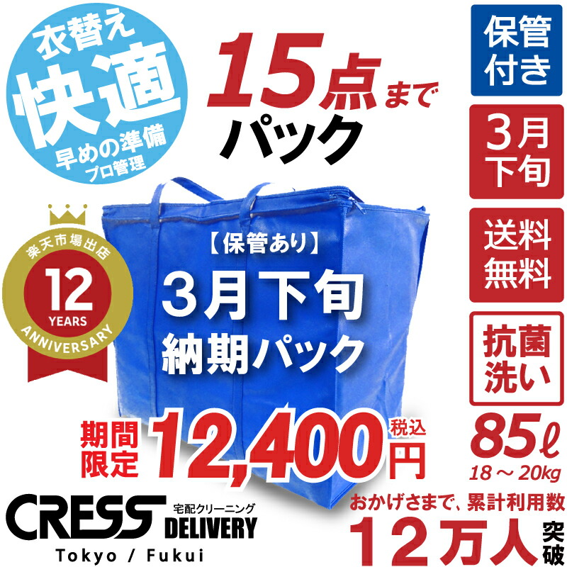 衣替えセール!【500円OFFクーポン付き】【送料無料】 【令和8年3月下旬(納期)青15・タタミ】 15点まで 宅配クリーニング 保管 宅配 クリーニング 詰め放題 宅配 ダウン 枚数制限なし クレス