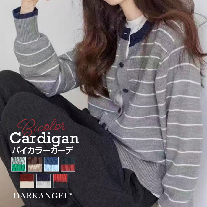 44%OFF!【24H限定:4,490円~2,499円!】 トップス カーディガン ニットカーディガン ボーダーカーディガン レディース 羽織り バイカラー ボーダー 無地 配色 【 バイカラーカーデ 】 ダークエンジェル