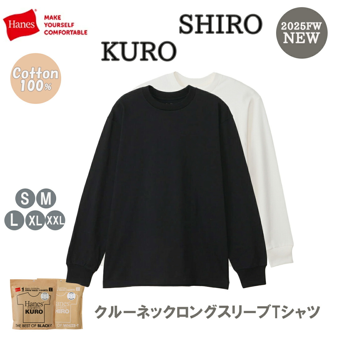 【最大800円OFFクーポン!買えば買うほどお得】ヘインズ KURO SHIRO Hanes T-SHIRTS SHIRO 長袖 ロンT クルーネックロングスリーブTシャツ 24FW 秋冬新作 ヘインズ HM4-A201 新作 S M L XL XXL 大きい 小さい おしゃれ おすすめ かわいい
