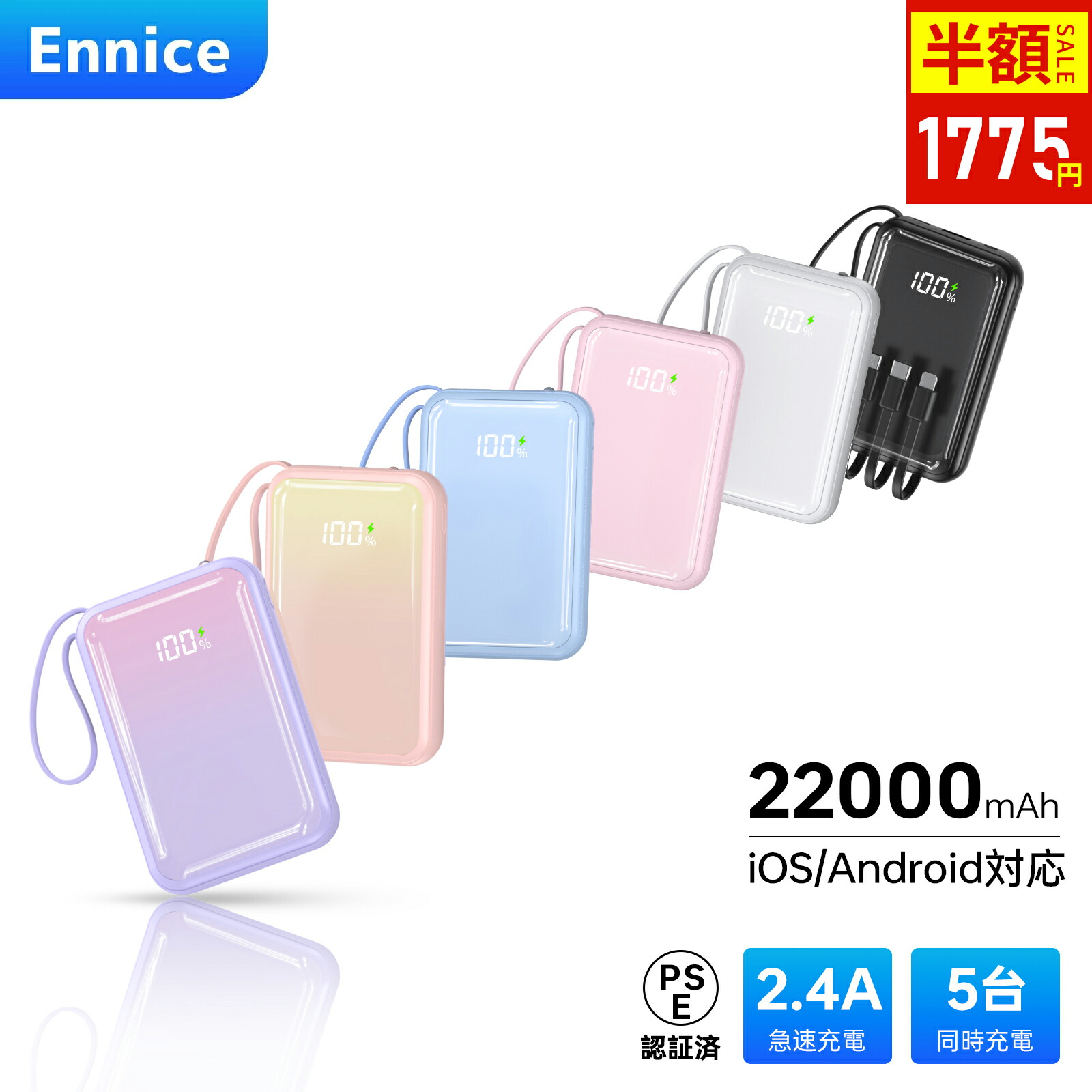 \90%OFF!スーパーSALE!500円OFFクーポン+P5で1775円!/【22000mAh大容量 4つのケーブル内蔵】モバイルバッテリー 22000mAh 大容量 軽量 小型 Ennice 防災ライト 5台同時充電 iPhone/Type-Cケーブル内蔵 急速充電 LED残量表示 スマホ充電器 iPhone/Android PSE認証