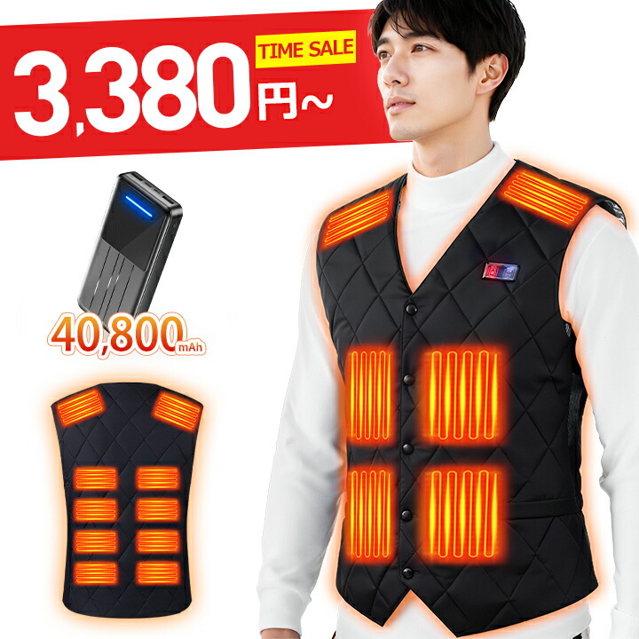 電熱ベスト 【クーポンで3,380円~楽天1位】 ヒーターベスト バッテリー付 16枚発熱ヒーター 電熱ジャケット USB給電式 MAX約75℃ 加熱ベスト 日本製繊維ヒーター ベスト 3段温度 電気ベスト usb 丸洗い 防寒ウェア M~XXL 16箇所発熱 丸洗い可 お歳暮 ギフト