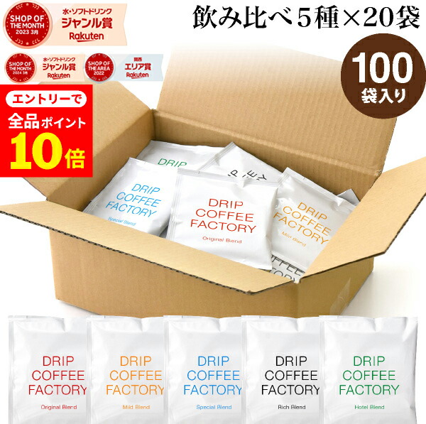 【店内全品ポイント10倍中(要エントリー)】(12/1 9:59迄)ドリップコーヒー コーヒー 粉 100杯 違いを楽しむ 5種 飲み比べ アソート セット ( 5種 × 20袋 ) コーヒー粉 珈琲 珈琲豆 ドリップバッグ ドリップパック 送料無料 ドリップコーヒーファクトリー