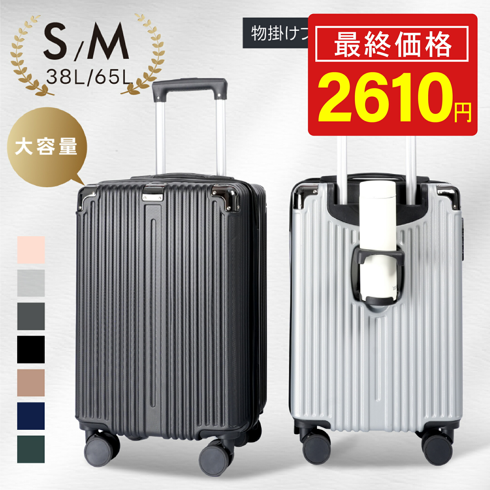 ★10台期間限定クーポンで2,610★キャリーケース Mサイズ スーツケース キャリーケース 機内持込可能 S/Mサイズ38L/65L キャリーバッグ 7カラー選ぶ 1-3日用 泊まる 軽量設計 360度回転 大容量 カップホルダー ビジネス 修学旅行 海外旅行 国内旅行 ef-a034