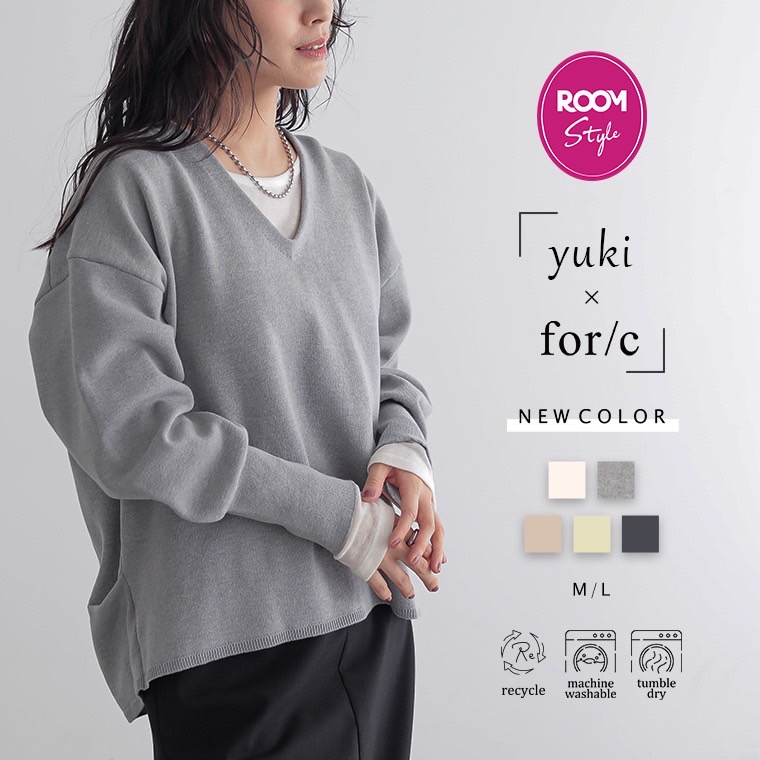 【yuki×for/cコラボ】スウェットライク バックタック ニット プルオーバー トップス レディース セーター スウェットVネック 長袖 カーブシルエット リサイクルポリエステル きれいめ 秋 冬 M L サイズ 洗濯可 for/c フォーシー 楽天room