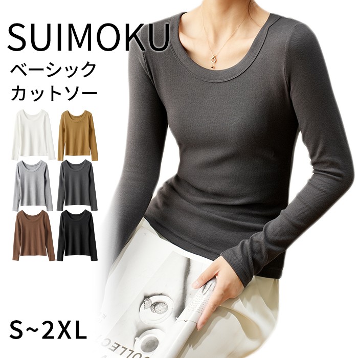 【スイモク 正規品】 uネック tシャツ 深め レディース 長袖 カジュアル ロンT カットソー 秋冬 冬 きれいめ ルームウエア オシャレ 無地 女性用 肌着 重ね着 綿 大きいサイズ 着回し ブラック ホワイト キャラメル ブラウン グレー 5683038【水沐良品】 SUIMOKU