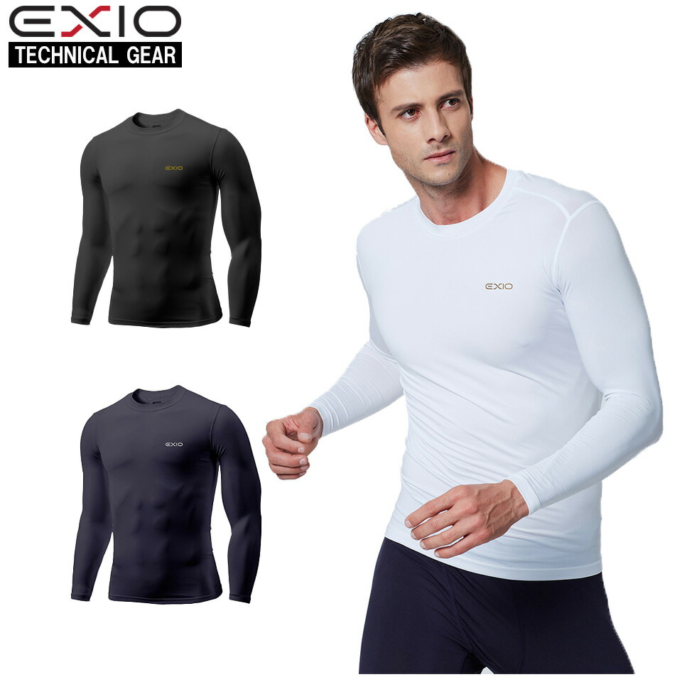 【EXIO】 エクシオ 接触冷感 コンプレッションインナー クールネック オールシーズン テックフィット メンズ 長袖 UVカット 紫外線対策 吸汗速乾 通気性 伸縮性 速乾性 スポーツインナー 加圧シャツ スポーツ トレーニング ジム 送料無料 M-2XL 全3色 EX-R01