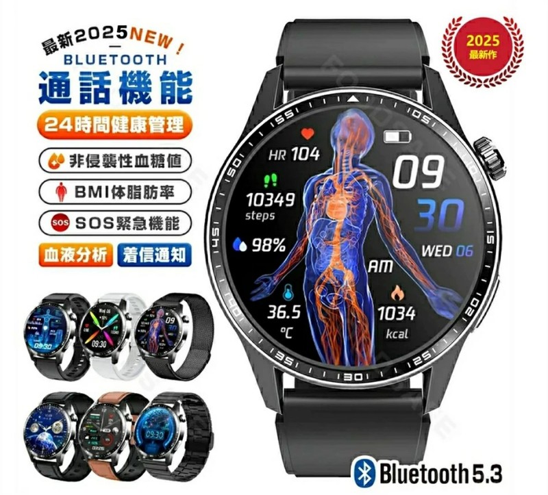 文字盤カスタマイズ 着信通知 24時間皮膚温変動検知 心拍数 血中酸素濃度 歩数 大画面 音楽制御 電卓 天気 ストップウォッチ スポーツ 血糖 値 計測 スマート ウォッチ