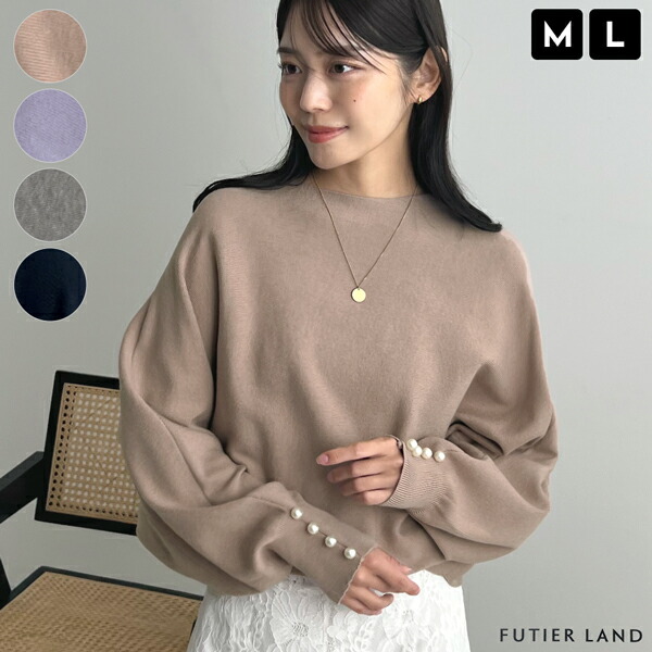 半額クーポンで2495円★チクチクしない 着痩せ見え トップス ニット セーター レディース 長袖 ボートネック カジュアル オフィスカジュアル パール シンプル 大人可愛い お洒落 韓国ファッション YP/ 袖口パールドルマンニット