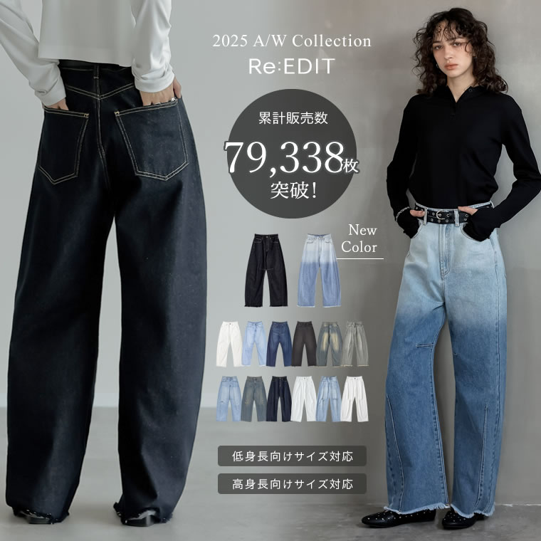 [販売枚数7.9万枚突破]【身長別気比べ動画あり】【大きいサイズ有】着やせ効果も。今期No1デニム!脚のラインを拾いにくいカーブシルエット