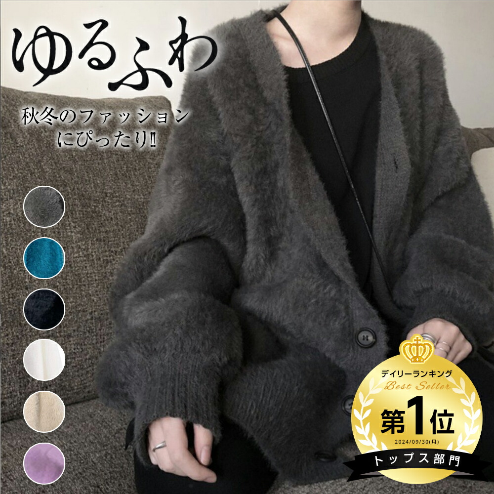 【24h限定】\半額クーポンで、最安1,990円/カーディガン レディース ニットカーディガン Vネック ゆるニット シャギーニット フェザーヤーン 大きいサイズ 体型カバー 通勤コーデ ママコーデ トップス ニットコート ジャケット ふわふわ 防寒 韓国風 人気 秋服 冬服 羽織り
