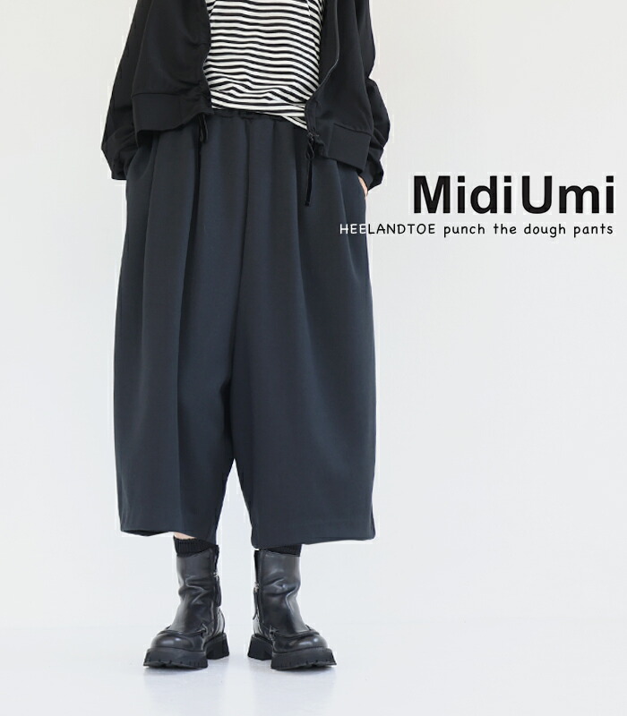 二回目予約|MidiUmi ×ヒールアンドトゥ別注 八分丈ポンチガウチョパンツ サルエルシルエット オールシーズン ポンチ素材 ブラック 6153 ミディウミ 【送料無料】