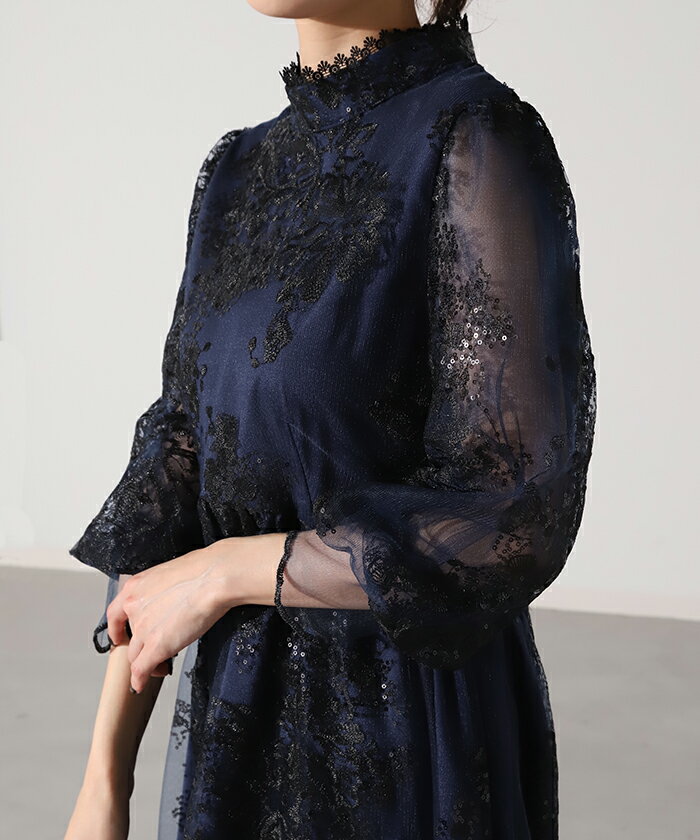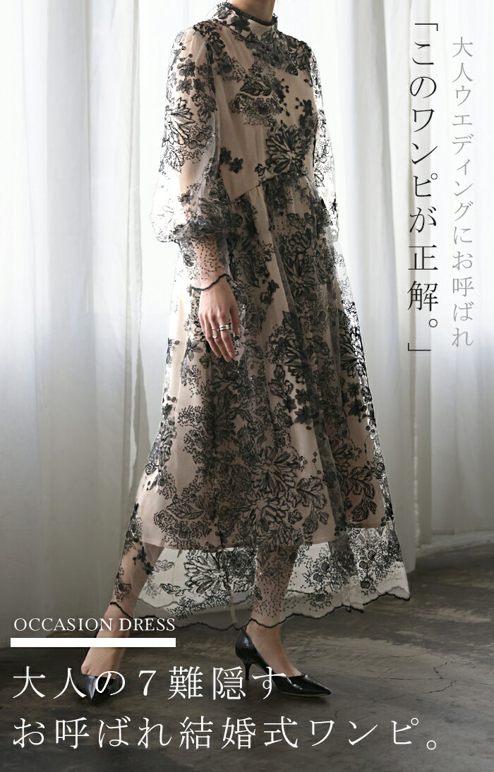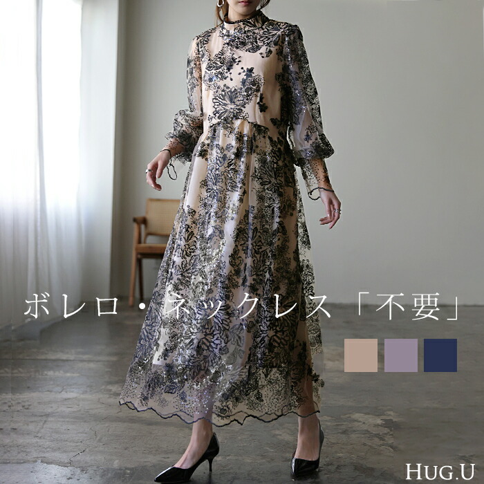 袖あり【即納】 『 これにしてよかった。』 結婚式 ワンピース オケージョン ロングワンピース ロング 体型カバー レディース ワンピ 長袖 パーティー きれいめ ハイネック レース フォーマル ドレス 二次会 大きいサイズ 黒 春 冬 HUG.U