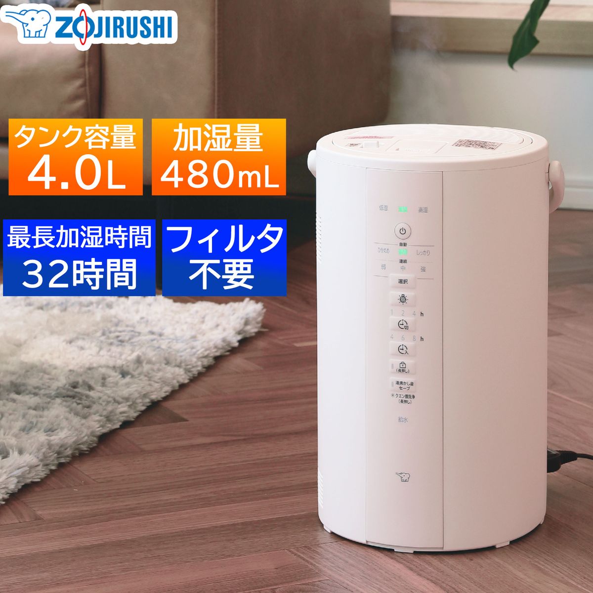 象印マホービン スチーム式加湿器 加湿量480mL/h(木造8畳/プレハブ洋室13畳まで) タンク4.0L ホワイト EE-DE50-WA