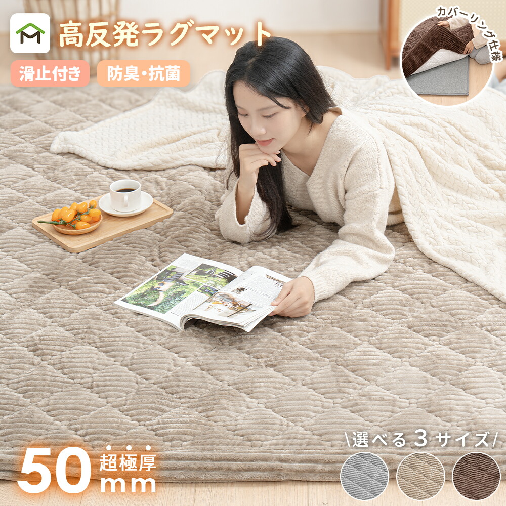 ラグマット 厚手 超極厚60mm/50mm ふわふわ 2畳 3畳 洗える カバーリング ストライプ フランネル キルトラグ 床暖房 ホットカーペット対応 こたつ 対応 防音 極厚 ラグマット カーペット 厚手 高反発 北欧 絨毯 送料無料