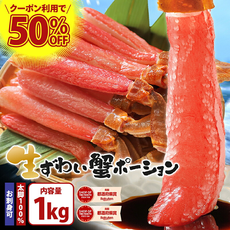 【ブラックフライデー★通常12,960円⇒6,480円】 楽天1位 生ズワイガニ かにポーション カニポーション かに 蟹 【1kg/30本×1袋または15本×2袋】ズワイ蟹 ズワイカニ 蟹鍋 蟹ポーション ズワイガニ ズワイカニポーション 生ずわいがに 生カニ