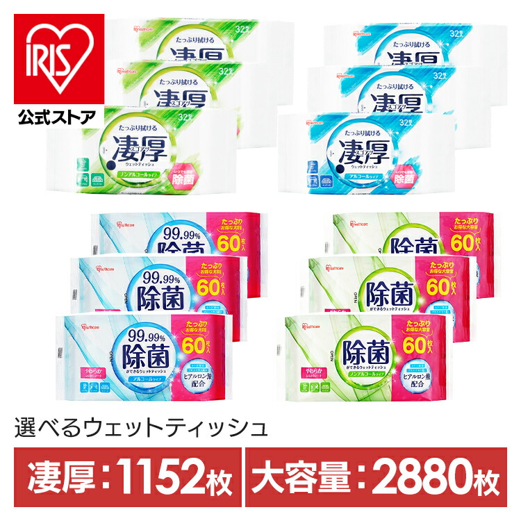【2880枚/1152枚】 ウェットティッシュ 除菌シート 除菌ウェットティッシュ 除菌ができるウェットティッシュ 2880枚 1152枚 アイリスオーヤマ WTS-60N WTS-60A 【iris_dl03】【iris_dl01】