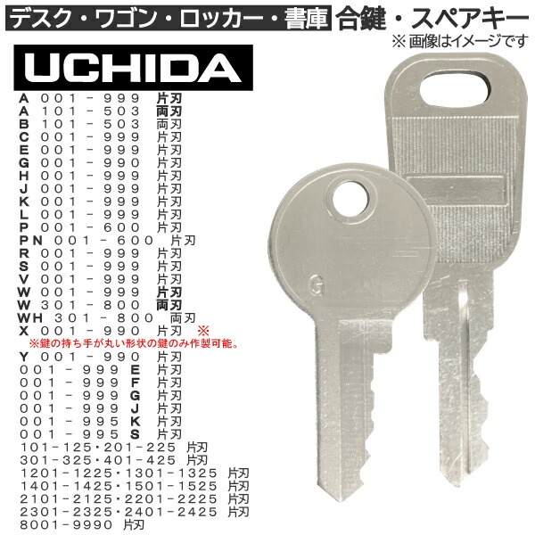UCHIDA(ウチダ) 合鍵 スペアキー【ロッカー・デスク・ワゴン・キャビネット・袖机・脇机・書庫・保管庫 用】鍵 カギ 合カギ 合鍵作製 合カギ作製 合鍵作成 合カギ作成