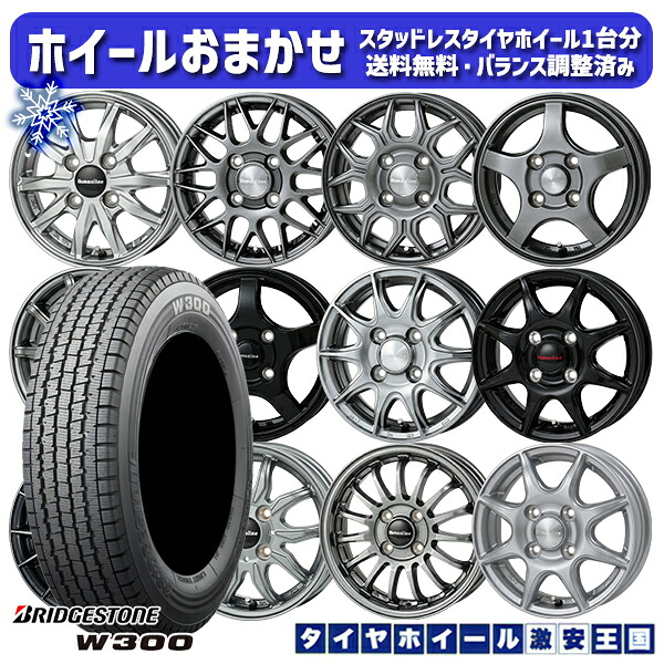 スタッドレスタイヤホイール4本セット 145/80R12 80/78N 2024〜2025年製 ブリヂストン W300 ホイールデザインおまかせ 12インチ 4.0J 4H100