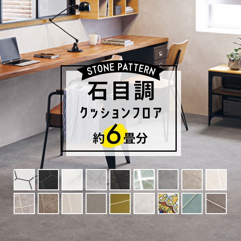 【最大8000円OFFクーポン★マラソン】 \着後レビューで500円OFFクーポン!/ クッションフロア 石目調 約6畳用 住宅用 日本製 大理石調 モルタル調 コンクリート調 タイル柄 ホワイト グレー ブラウン ブラック 人気 クッションシート おしゃれ DIY